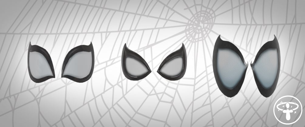 3 pairs of lenses as seen in the art of spider-man artists Steve Ditko, John Romita Sr., And Todd Mcfarlane.